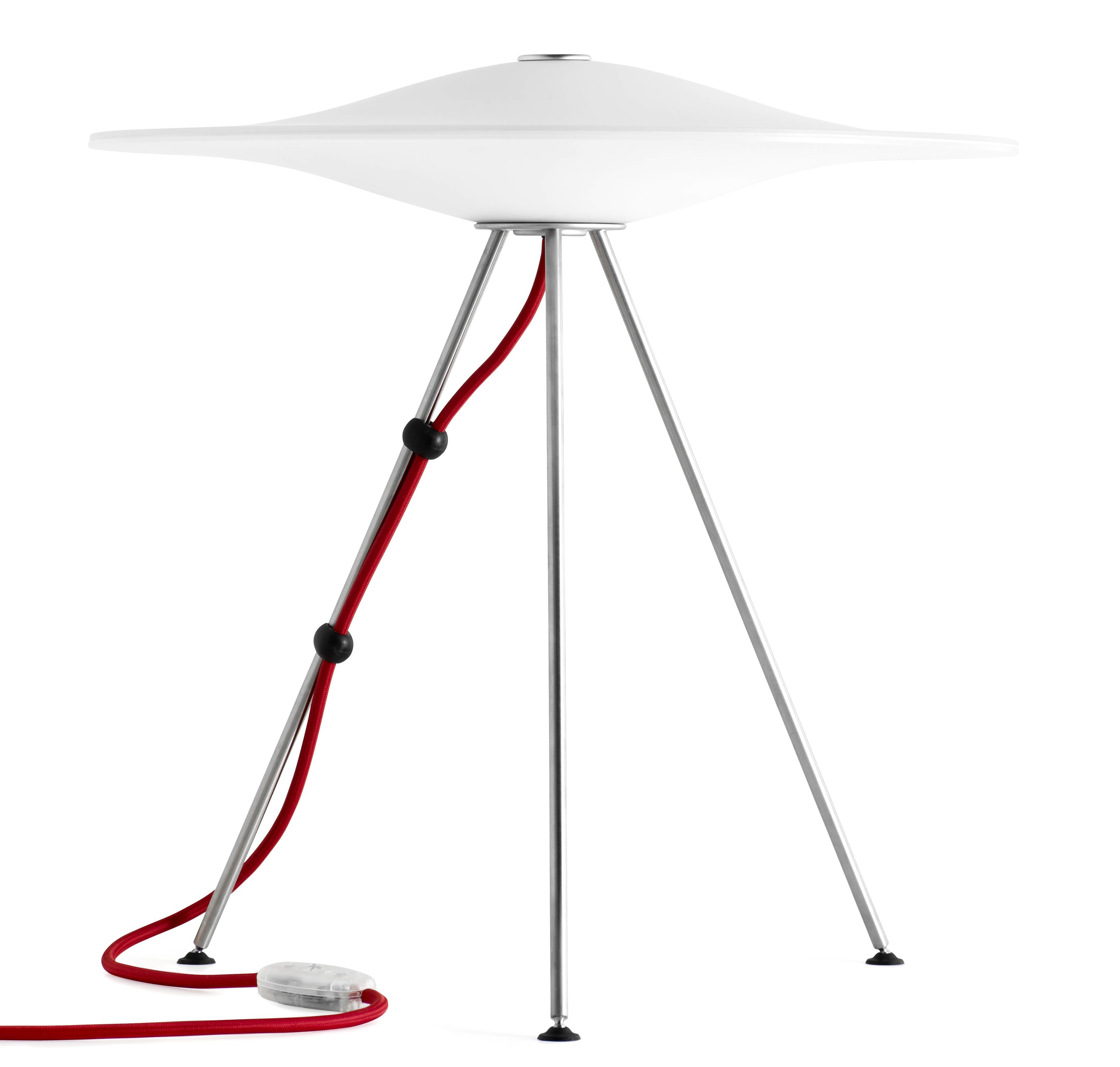 Den viste tidløse bordskønhed hedder Sinuslampen og den er i familie med to andre, nemlig henholdsvis en loft- og gulvvariant. Piet Hein designede lampen i 1967. Under produktudviklingen eksperimenterede han forgæves med plastik, men blev først helt tilfreds med værket, da skærmen slutteligt var udført i mundblæst opalglas. Piet Hein var en nemlig en detaljernes mand og derfor var det kun de ypperste materialer, der var gode nok.